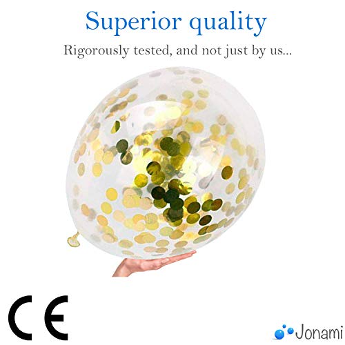 ★ GOUDEN RANDJE VOOR EXCLUSIEF FEEST ★ U krijgt een pakje van 40 transparante ballonnen, voorgevuld met de gouden confetti. Jonami ballonenset is gemaakt om glamour en glans toe te voegen aan uw evenement. Iedereen zal het leuk vinden, uw gasten zullen versteld staan en u zult super blij zijn om het beste feest ooit te hebben!