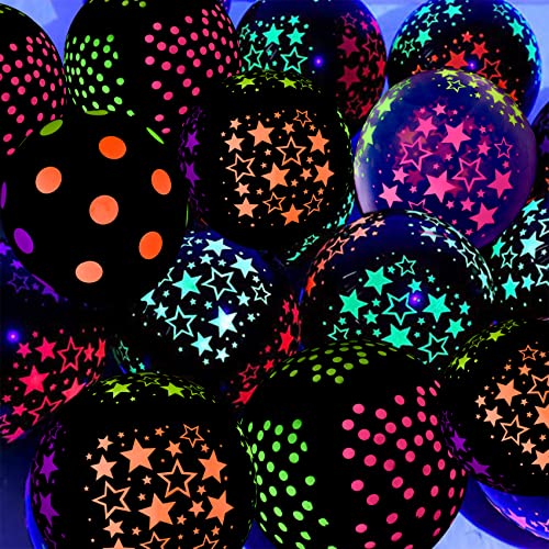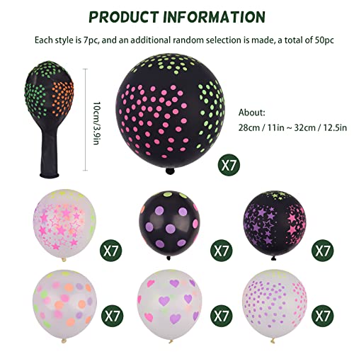 50 Stuks Faumsut Blacklight Party Ballonnen, 12 inch Mini Polka Dots Ballonnen Neon Latex Ballonnen Neon Glow Latex Ballonnen Glow in The Dark Latex Ballonnen voor Glow Party Supplies