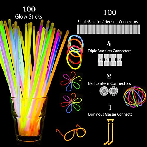 100 premium glow sticks met connectoren om glow armbanden, kettingen, bloemen, glazen en ballen te maken voor kinderen…