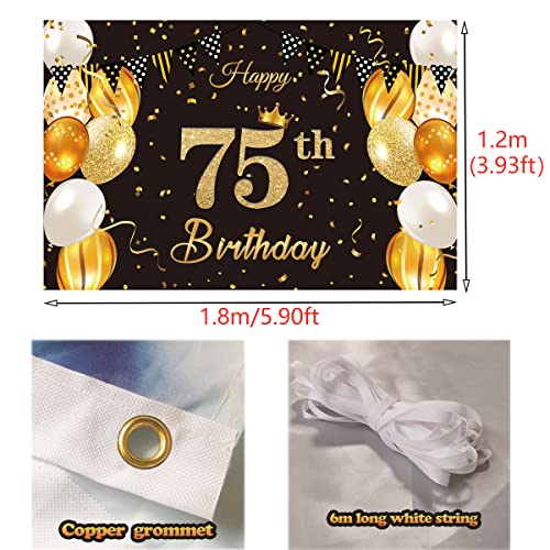 【Toepasselijke gelegenheid】Briljant goud zwart 75e verjaardag banner geschikt voor 75e verjaardag feest welkomstdecoratie of voordeur bord, 75e verjaardag deur tuin wanddecoratie, 75e verjaardag tafel tafelkleed decoratie benodigdheden, 75e verjaardag muur plafond gordijn decoratie, 75e verjaardag fotocabine achtergrond, 75e verjaardag foto achtergrond, 75e verjaardag fotografie decoratie.