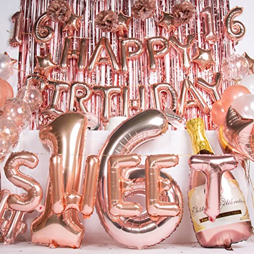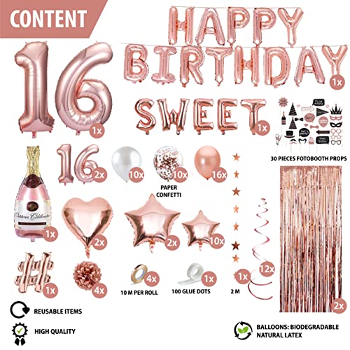 Specification: Fissaly® Sweet 16 Jaar Rose Goud Verjaardag Decoratie Versiering – Helium, Latex & Papieren Confetti Ballonnen