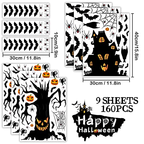Halloween raamstickers, 160 stickers, decoratie voor ramen, Halloween, statisch, herbruikbaar, pompoen, vleermuis…