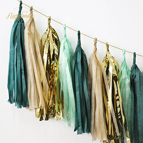 Specification: NICROLANDEE 20Pcs Party Slingers Teal Groen Champagne Goud Mint Kwastje Garland Voor Bruiloft Eucalyptus Baby Douche…