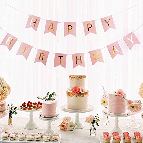 Specification: SUNBEAUTY Happy Birthday-slinger, verjaardagsdecoratie met gouden folieletters, Happy Birthday-banner voor…
