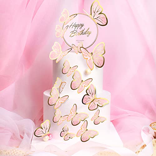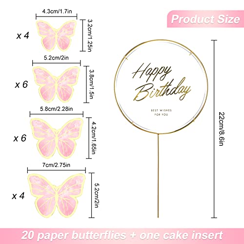 Hileyu 21 stuks vlinder cupcake toppers decoratie vlinder verjaardagstaart toppers met Happy Birthday acryl taarttoppers…