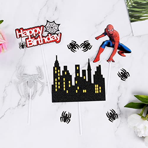 OSDUE Taartfiguren, 9 stuks, kinderverjaardag, Spider-taartdecoratie, cupcake-toppers, speelgoed, Hero taarttoppers…