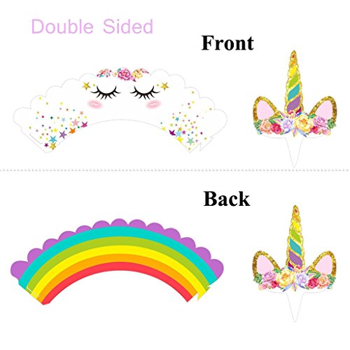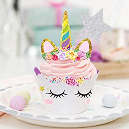Specification: Tumao Eenhoorn cupcake toppers 24 stuks, eenhoorn taartdecoratie voor verjaardag, feest